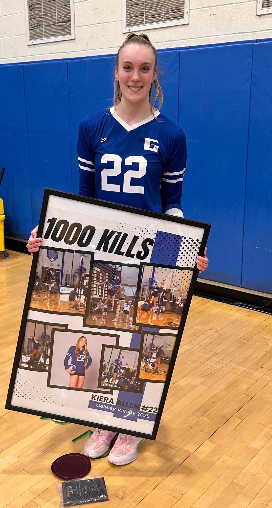 Congratulations to Sophomore Kiera Allen as she reached the 1,000 Kills plateau for her career. Kiera needed 10 kills to reach 1,000 heading into the Sectionals Finals, where she picked up 16 kills to reach the mark and push her career total to 1,006. Way to go, Kiera!!!! We are proud of you.